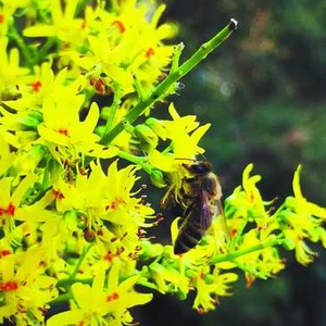 栾树花上的蜜蜂。