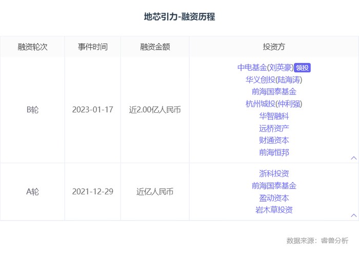 浙江地芯引力科技有限公司(下称「地芯引力」)近日宣布完成近2亿元B轮融资,此轮融资由中电基金领投,共同投资方包括杭州城投富鼎、恒邦资本、华义创投、华智融科、远桥资产、财通资本,现有投资方前海国泰基金继续追加投资。