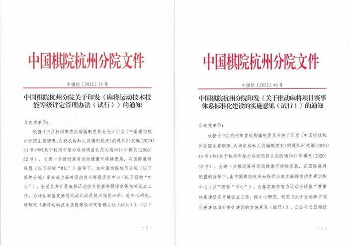 如何将散落在中国民间的麻将“人才”注册在案,让全民性的娱乐项目规范成为一个专业竞技项目?2022年,我国迈出关键一步:国际麻将联盟和中国棋院杭州分院共同成立麻将运动技术等级评定中心和麻将运动竞赛训练中心,出台《麻将运动技术技能等级评定管理办法》和《关于推动麻将项目赛事体系标准化建设的实施意见》,进一步推动了麻将运动规范化发展。