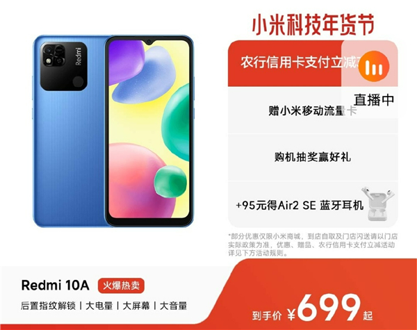 因为Redmi 10A的售价才只要699元,即便是买一台全新机拿去抵扣也只要1198元就能拿下一台入门的64GB iPhone SE 3。