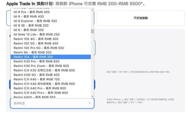 在兔年春节期间苹果出现了BUG,最后折合折旧后400元即可入手iPhone SE 3手机,页面用其他手机抵扣购买,如果选择Redmi 10A机型将会抵扣掉3000元,入手价仅需499元起。