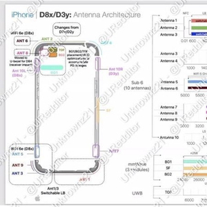 该文档来自研究人员和爆料人士 Unknownz21,其中包含 iPhone 15 天线架构的图表。D8x 指的是 iPhone 15 Pro 机型,信息表明更快的 Wi-Fi 6E 规格将仅限于 iPhone 15 Pro 和 iPhone 15 Pro Max。
