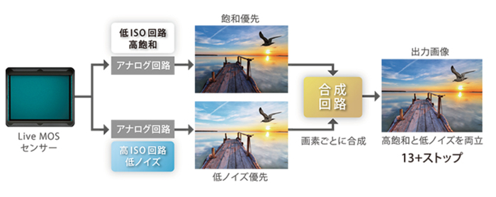 而新一代传感器普遍具有一高一低两个原生 ISO。在低感光度下,使用较低的原生 ISO 来获得更大动态范围;在高感光度下,使用较高的原生 ISO 来降低噪点。对于这项技术,索尼、松下、适马等厂商称之为“双原生 ISO”,三星称之为“智能 ISO”,佳能则用多挡“基本感光度”或“参考感光度”来描述。