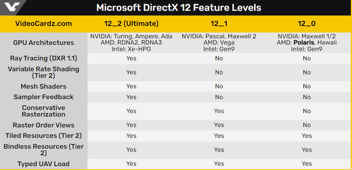 IT之家查询发现,AMD Polaris 系列 GPU 架构仅支持 12_0 硬件功能级别,而该游戏至少需要 12_1 才能游玩。值得注意的是,有些游戏需要更高的功能级别 (12_2),例如《地铁:离去 增强版》。
