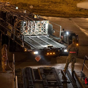 ↑2023年1月20日,多佛空军基地,运往乌克兰的弹药正被装载到一架商用飞机上
