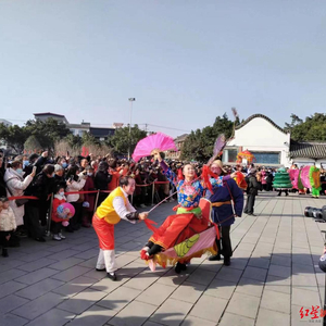 当天上午,孝泉镇2023年上九会在欢快的锣鼓声中拉开序幕。祥狮献瑞、梦幻魔术、古典舞蹈、歌曲联唱、欢乐互动一一上演,春节的热闹氛围在现场洋溢。同时,在德孝城门口,舞狮表演、猪八戒背媳妇、划采莲船、坐花轿、坐鸡公车、投壶射礼等多个传统民俗表演轮番登场。演员身着色彩鲜艳的古装,伴着欢快热闹的小调,生动活泼的民俗表演让现场游客纷纷留影记录。“我们一家是从成都过来的。孝泉上九会很热闹,民俗表演鲜活灵动,让人印象深刻,过年的氛围非常浓郁。”游客徐先生说。