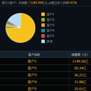 ▲ 立讯精密2021年前5大客户营收占比 来源:同花顺