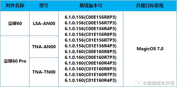荣耀 60、荣耀 50 系列开启 MagicOS 7.0 内测招募