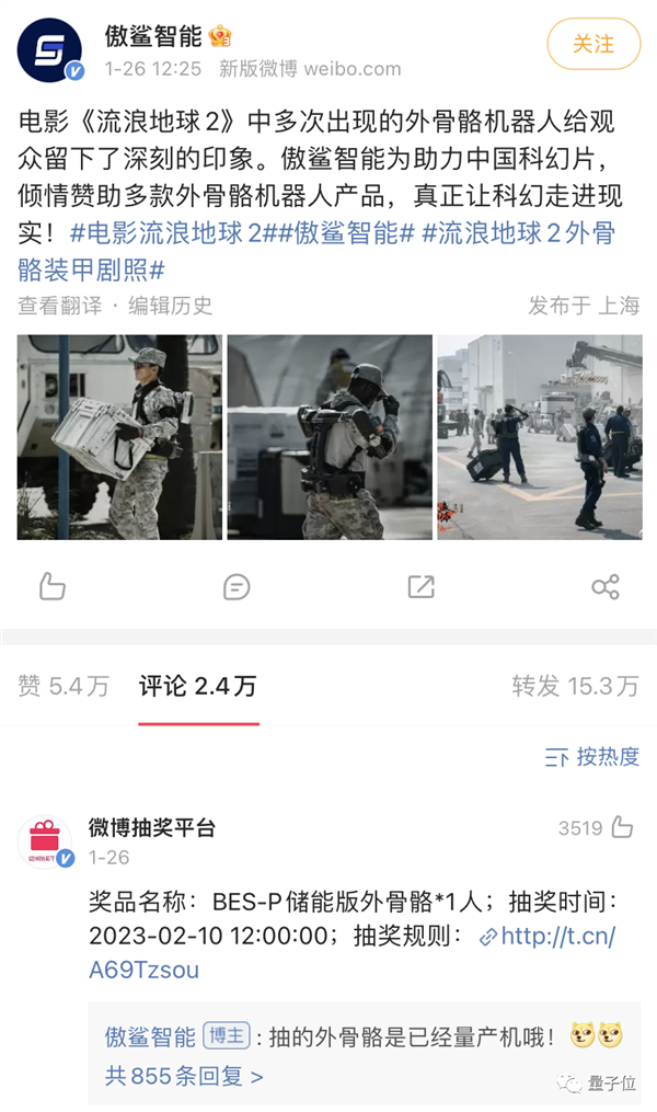 电影中出现的外骨骼机器人,甚至都能拿出来抽奖了: