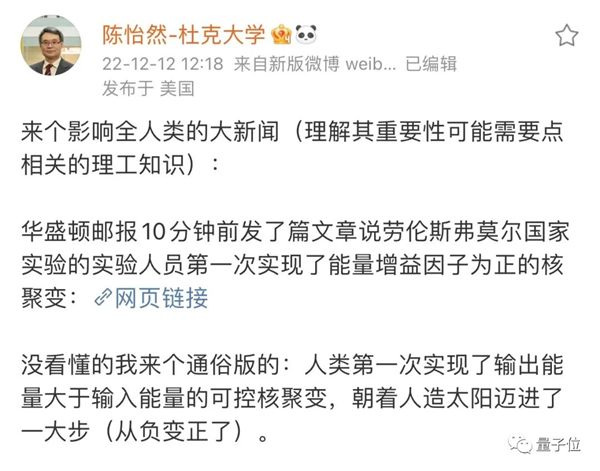 而现实世界里,1个月前人类才刚刚实现了可控核聚变研究的一项新里程碑研究——实现净能量增益,让核聚变产生的能量比注入的还要多。