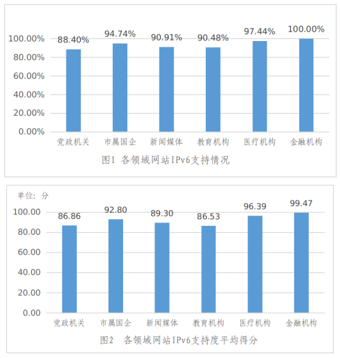 本期监测覆盖党政机关、市属国企、新闻媒体、医疗机构、教育机构、金融机构等6个领域,共515个门户网站。监测结果显示,483个网站支持IPv6访问,占比93.79%IPv6支持度平均得分92.30,相比20229月降低1.29分。