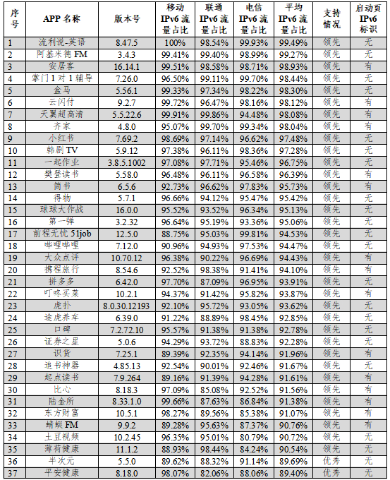 集海航运平台、徐汇通、i上开、指e通、上海汽车报、东证期货投资开户等6APPIPv6流量占比提升显著,增幅均超过50个百分点。