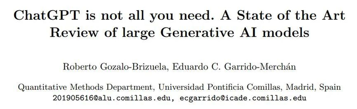 论文《ChatGPT is not all you need. A State of the Art Review of large Generative AI models》: