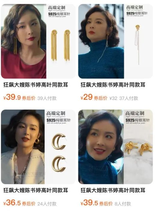 “大嫂”同款金色流苏款耳环最受欢迎,此外还有亮相过的珍珠、圆环造型的其他多个款式,甚至有卖家推出了定制服务,买家可以剧中同款再个性化定制钟爱的款式。