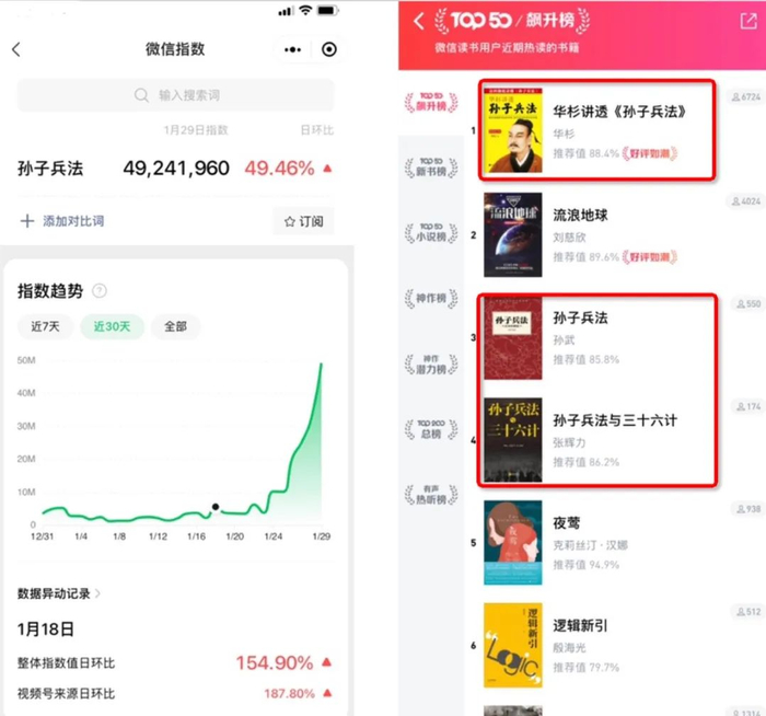电视机剧《狂飙》中,主人公高启强在警察安欣的建议下研读这部“老书”多年,也会随口引用书中“围师必阙”的典故。一边,剧情推动越来越深入;另一边,高启强扮演者张颂文的关注热度越来越高,这些都为“带货”打下基础,让原本销量一般的《孙子兵法》瞬间走红,销量一路狂飙。据店铺工作人员介绍,剧中同款蓝皮《孙子兵法》是山西古籍出版社的老版本,因此库存有限,目前已经被抢购一空,仅有预售链接,店里正在联系上游供货,预计20天才能发货。而另一款黄皮缎面精装版的《孙子兵法》依然有在售现货。《天下网商》了解到,在许多公开的企业管理咨询课程中,都有关于《孙子兵法》的教学内容,这本书也被众多企业经营者奉为“商业天条”,因此平时的读者以经商人士和学生居多。最新数据显示,近一周来,“孙子兵法”在淘宝的搜索量同比增长超过80倍,引导成交金额同比增长超过40多倍,成交人数增长超65倍;多家图书店铺出现同款《孙子兵法》售罄、需等预售的情况。在其他平台,《孙子兵法》的销量同样在狂飙。开播以来关键词“孙子兵法”在微信指数上升至近5亿,微信读书app《孙子兵法》现在已经占据了TOP50飙升榜的第一,讲解和原著版本占据了前五中的三席。在当当网,目前《孙子兵法》也是古籍榜销冠,其他各版本也跻身排行榜前列。 多个“狂飙同款”持续大热
