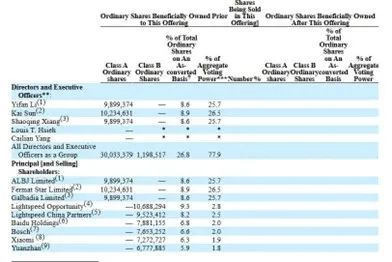 据招股书,截至目前,创始人及高管团队合计持股26.8%,光速中国旗下基金Lightspeed Opportunity、Lightspeed China Partners分别持股9.3%和8.2%,是禾赛科技最大投资者。其余股东中,百度持股6.8%、博世持股6.6%,小米持股6.3%,远瞻持股5.9%。
