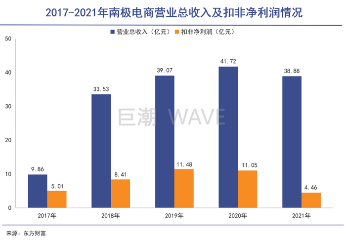 南极电商的年报中,公司将其主营业务描述为“以电商渠道为主,基于品牌授权业务,整合供应链上、中、下游资源,向产业链提供高效率的产业服务,向消费者提供高性价比的产品。”