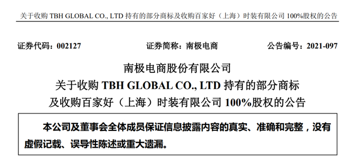 自从2020年公司业绩和股价双双变脸之后,南极电商就做了不少应对的尝试,包括2021年连续两次股票回购,又以5亿元收购了处在亏损状态的韩国女装品牌百家好。
