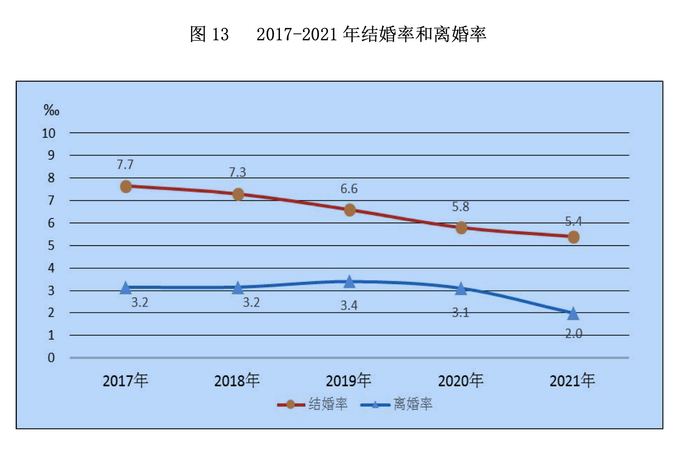 2017年至2021年结婚率和离婚率 图据民政部