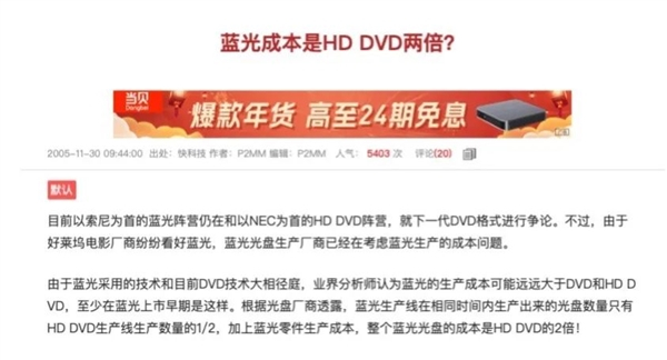 就在大家还在对价格居高不下的高清播放器( 第一款 HD-DVD 播放器价格高达 1000 美元 ),持观望态度的时候。
