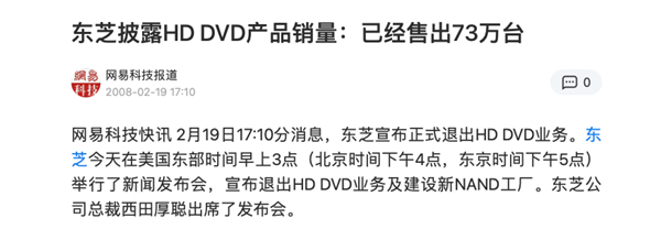 再加上,东芝还有半导体业务这个吞金怪兽在前,光盘只是副业,在短短一年内,东芝就做出了取舍。
