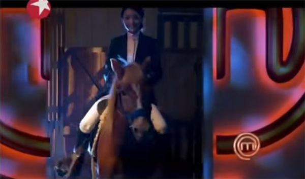 还有骑着马进演播厅的大姐,似乎下一秒就要把自己坐骑献祭给餐桌。