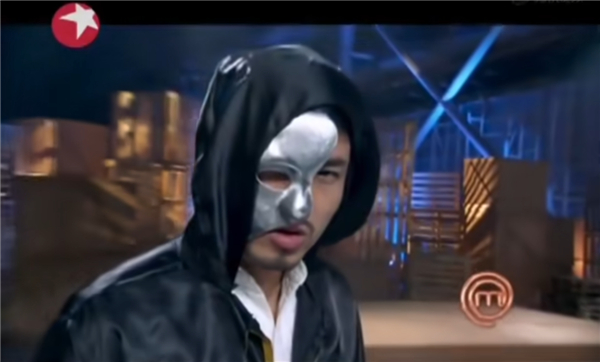 来这里比赛的选手们,有仿佛《 中华小当家 》反派的蒙面做菜侠 Chef Man。