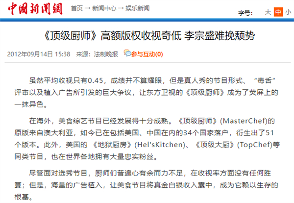 所以,引进国外成熟节目的《 顶级厨师 》,毫无疑问,属于绝境中剑走偏锋,寻找突破口。