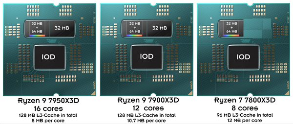 年初,AMD正式发布了锐龙7000X3D系列处理器,通过堆叠3D V-Cache缓存进一步提升游戏性能,型号也从上代的一款增加到三款。
