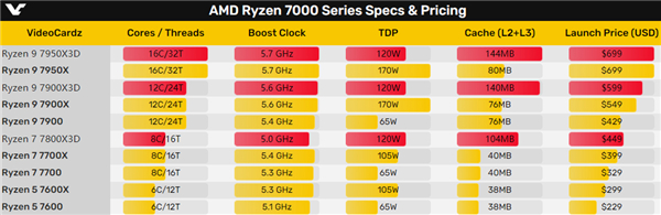 4月6日才会开卖,449美元,不但比锐龙7 7700X首发价贵50美元,也比锐龙9 7900高出20美元。