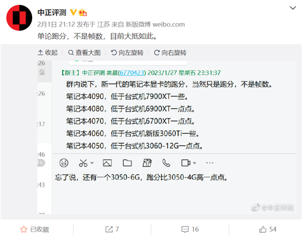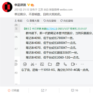 从2月份开始,各大厂商的新一代RTX 40轻薄本、游戏本也陆续发布,那这些显卡的性能水平到底如何?做评测及硬件销售的@中正评测汇总了一个性能数据,虽然只对比了跑分,但是把RTX 40系列移动显卡跟大家熟悉的显卡性能做了对比,可以很方便地看出性能档次。