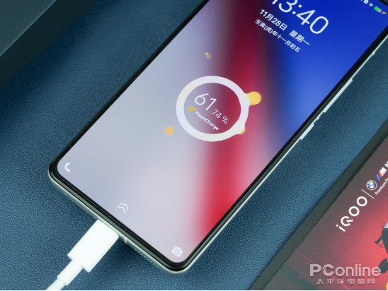 iQOO11搭载着120W闪充+5000mAh大电池的组合。在室温28度的情况下,仅需15分钟左右便可以将这一块5000mAh的大电池迅速充满,哪怕是重度使用手机的用户,也完全不用担心,光速回满血就是如此。