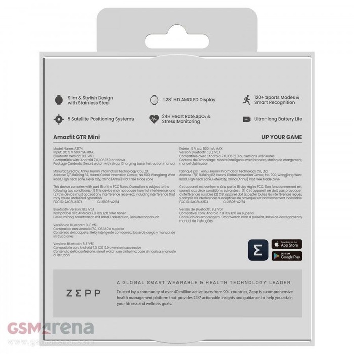在健康追踪方面,新款 GTR Mini 手表支持 24 小时心率、SpO2 和压力监测。新款 GTR Mini 还将跟踪 120 多种具有活动识别功能的运动模式。这款手表将配备 500mAh 电池,并搭配 Zepp OS 使用。