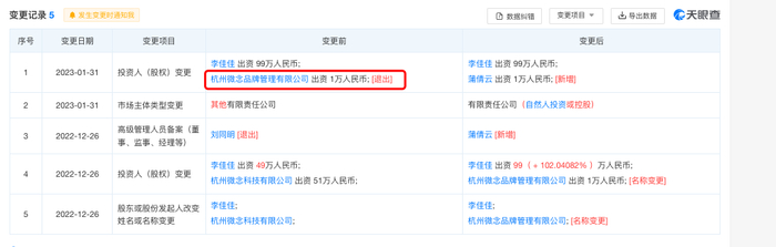 杭州微念已退出李子柒公司股东行列