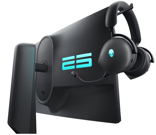 ALIENWARE 25英寸游戏显示器AW2523HF,提供高达360Hz刷新率以及0.5ms灰阶响应时间,通过了AMD FreeSync Premium技术和VESA AdaptiveSync认证,同样采用了六边形底座设计以及可伸缩耳机挂架。