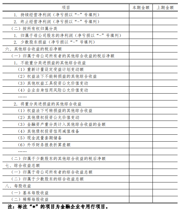 既然有归属于母公司所有者权益和少数股东权益,那在利润表中也有分别对应的净利润,也即“归属于母公司所有者的净利润”和“少数股东损益”。