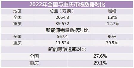2022年,重庆市场累计销售汽车超39.5万辆,其中,新能源渗透率更是超过了29%,领跑全国市场。