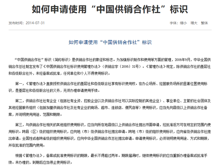 红星资本局注意到,中国供销合作网曾发布《如何申请使用“中国供销合作社”标识》的文章,其中提到,《中国供销合作社标识使用管理办法》规定,除供销合作社的基层社和各级联合社外,未经备案或批准,任何单位和个人不得使用标识。与供销合作社相关的其他组织使用标识,应当向所在地县级以上供销合作社提出书面申请,经批准后方可使用。
