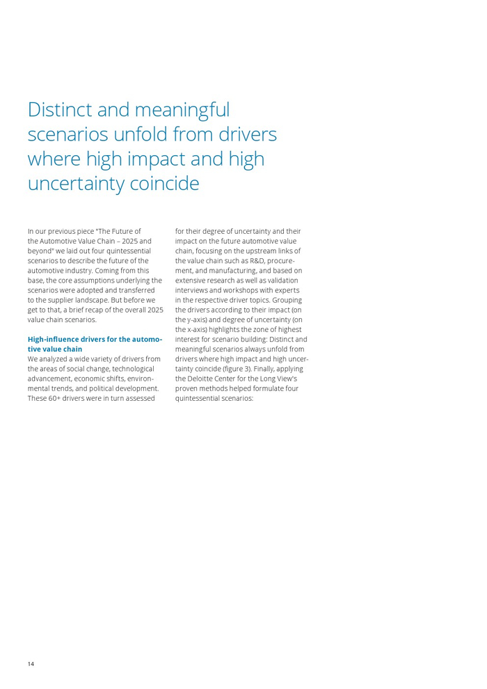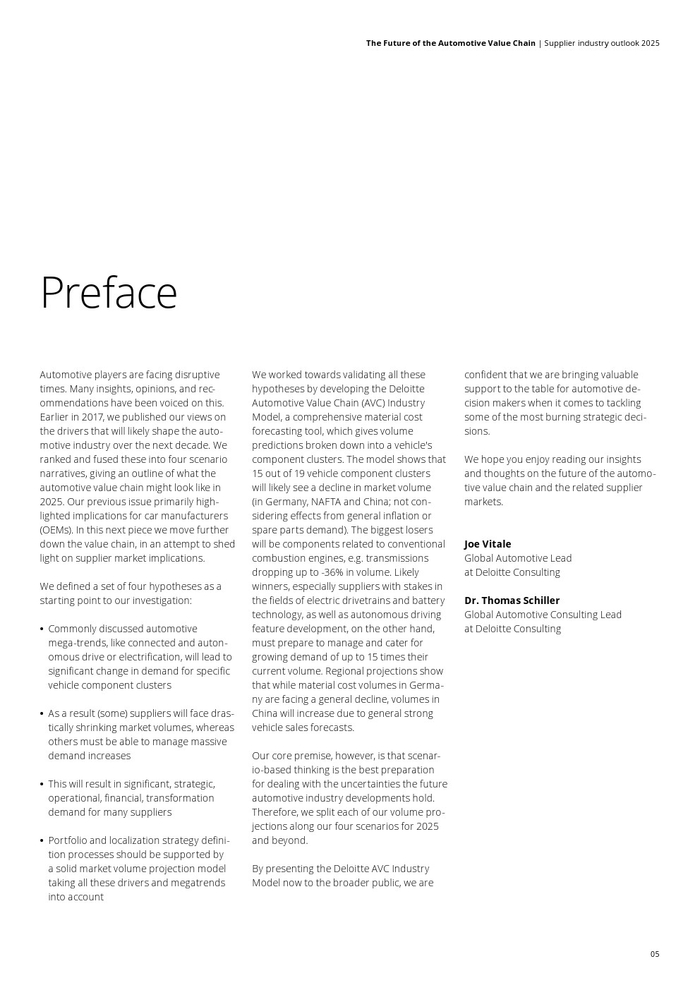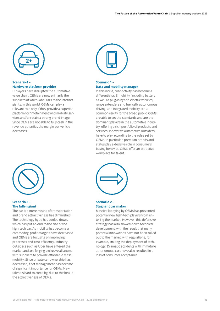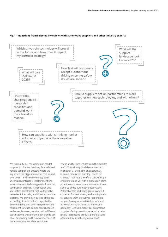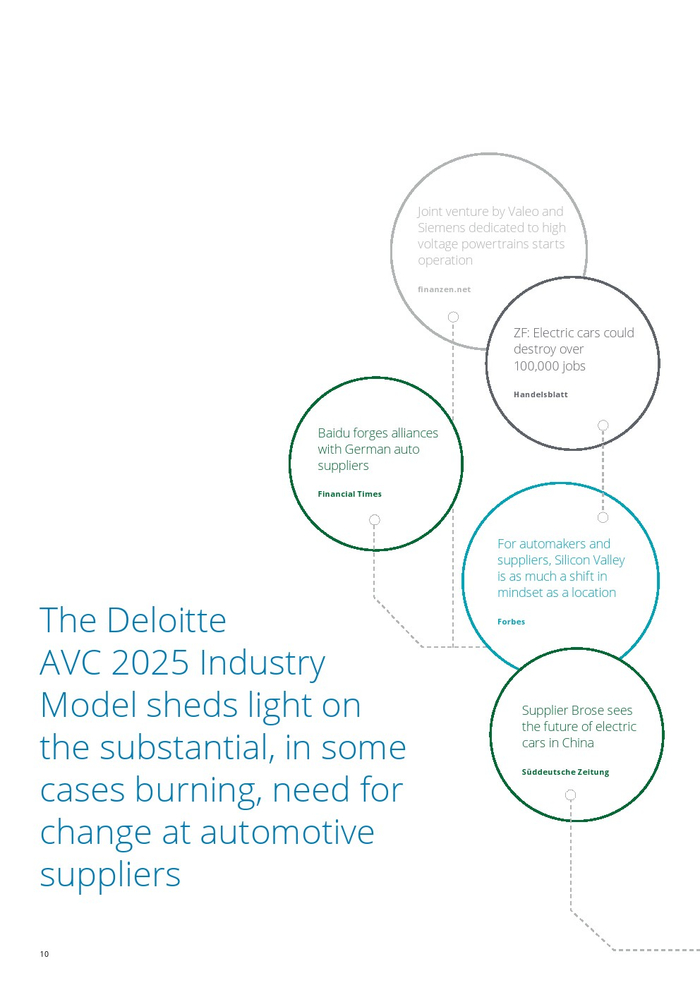 汽车业者正面临颠覆性的时代。在汽车价值链(AVC)报告中,德勤广泛研究并发布了当前行业趋势。历史性的变化不仅仅影响原始设备制造商,这项研究正在进一步深入价值链,试图阐明供应商市场的影响。