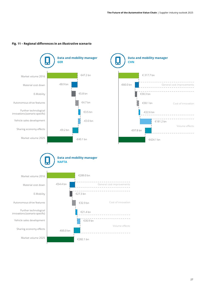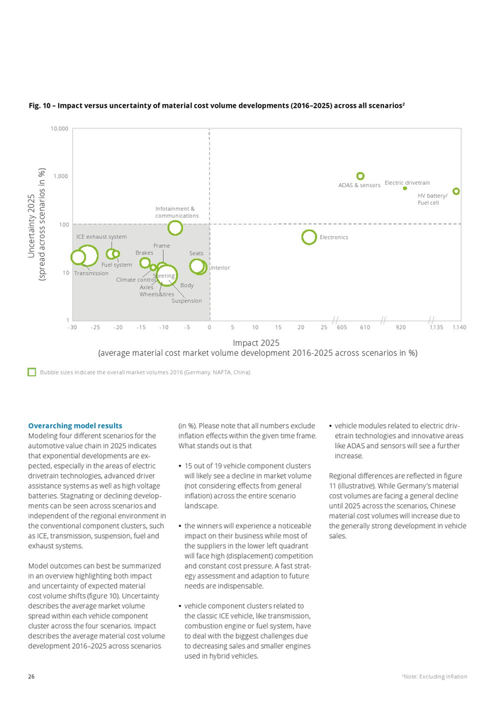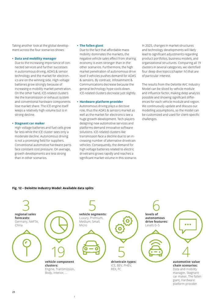 德勤认为必须根据其特定场景的预测来查看每个车辆组件集群。例如对于信息娱乐和通信场景的增长率从25%到下降-60%。