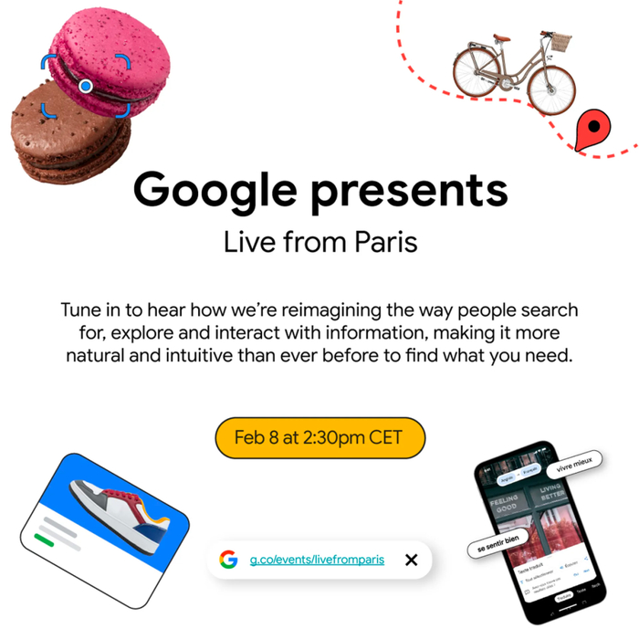 谷歌即将在 2 月 8 日举行的 YouTube 直播活动,将介绍公司在「如何利用人工智能的力量重新构想搜索信息、探索问题和与信息互动的方式,让人们比以往更自然、更直观地找到所需信息」。