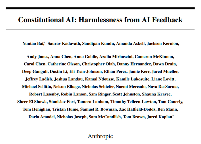 去年 12 月,Anthropic 发布了一篇题为《Constitutional AI: Harmlessness from AI Feedback》的论文。这篇论文描述了一个 520 亿参数的模型 ——AnthropicLM v4-s3。该模型是在一个大型文本语料库上用无监督方式训练的,很像 OpenAI 的 GPT-3。