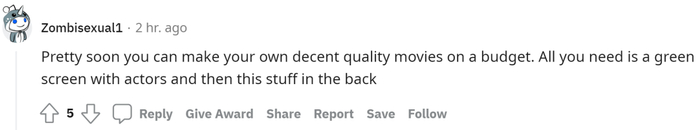 还有人表示:大家可以很快在预算内制作自己的的电影了,你所需要的只是一个绿幕以及这项技术:
