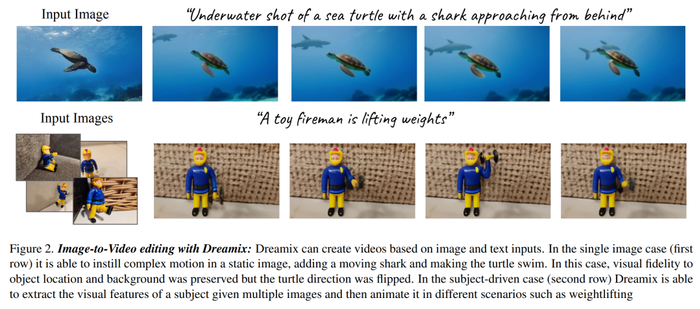 研究者进一步利用其视频编辑模型提出了一个新的图像动画框架,如下图 2 所示。该框架包含了几个步骤,比如为图像中的对象和背景设置动画、创建动态相机运动等。他们通过帧复制或几何图像变换等简单的图像处理操作来实现,从而创建粗糙的视频。接着使用 Dreamix 视频编辑器对视频进行编辑。此外研究者还使用其微调方法进行目标驱动的视频生成,也即 Dreambooth 的视频版本。