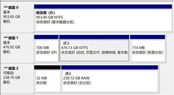 不过也不要悲观,或者手快就去执行格式化。因为这种情况多半是U盘或者存储卡出现了逻辑错误,右键单击计算机-管理-存储,会发现磁盘格式由于FAT变成了RAW,这种情况完全可以抢救一下。