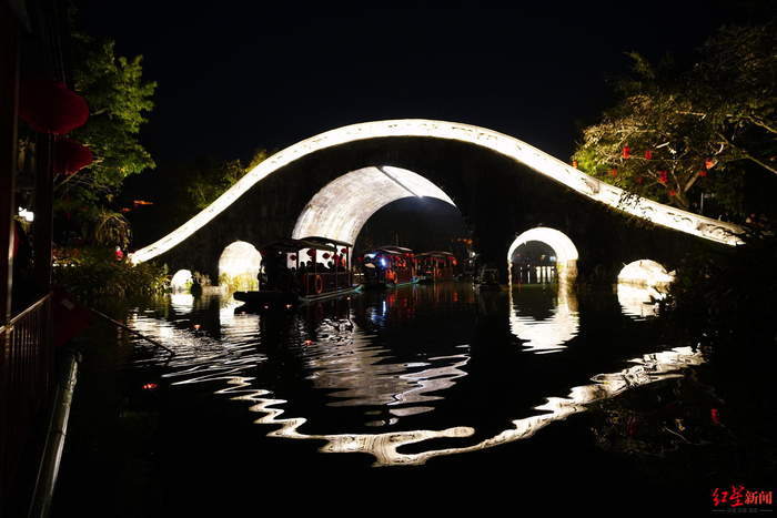 元宵节的双流区黄龙溪古镇,府河和鹿溪河水静静流淌,飞檐翘角的建筑被花灯、灯笼装点着,家家户户扶老携幼人潮涌动,这让成都游客李静感受到了古黄龙溪“日有千人拱手,夜有万盏明灯”的繁华。