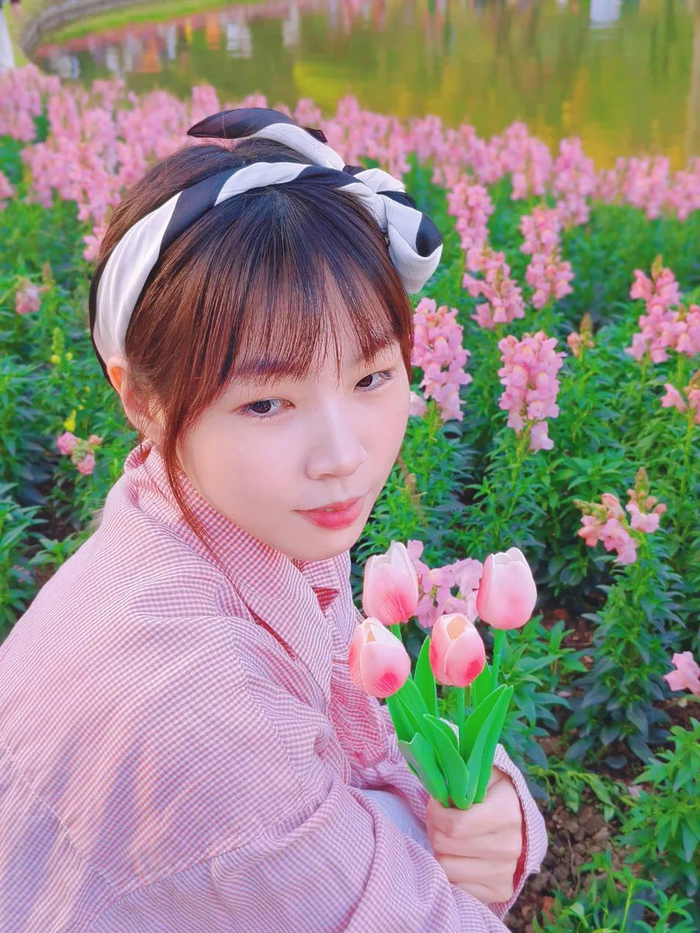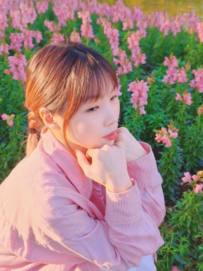 春天拍摄花卉人像,模特化个淡妆即可。花园有五颜六色的花,清透干净的妆感会更百搭,而浓妆并不是所有场景都适合。