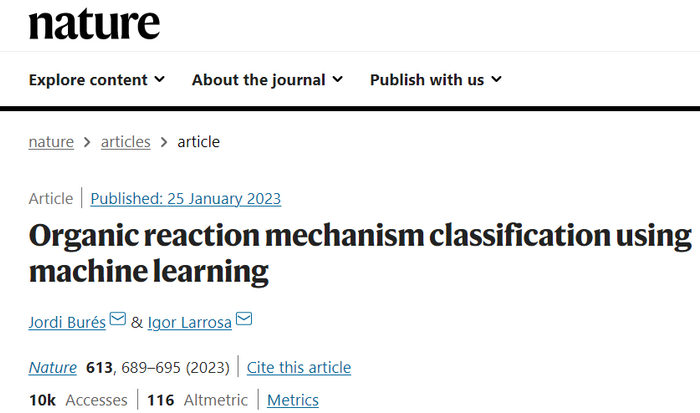 该研究以「Organic reaction mechanism classification using machine learning」为题,于 2023 年 1 月 25 日发布在《Nature》上。