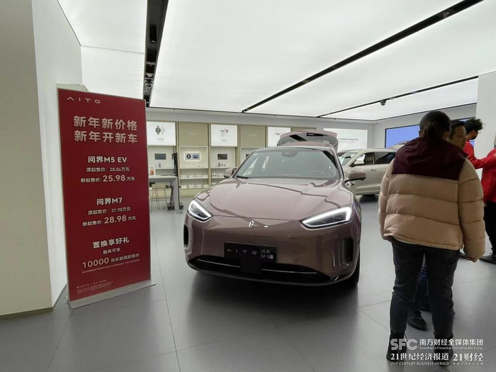 虽然与特斯拉降价后客流量、订单量骤增相比,问界降价促销的效果在1月份销量上不及预期,但记者走访当天,前来看车的消费者依然不少。