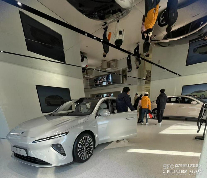 在记者驻足的十几分钟里,店内展示的ES7、ET7、ET5三款车型周围围满了看车的消费者,并不断有消费者进店、上车体验。
